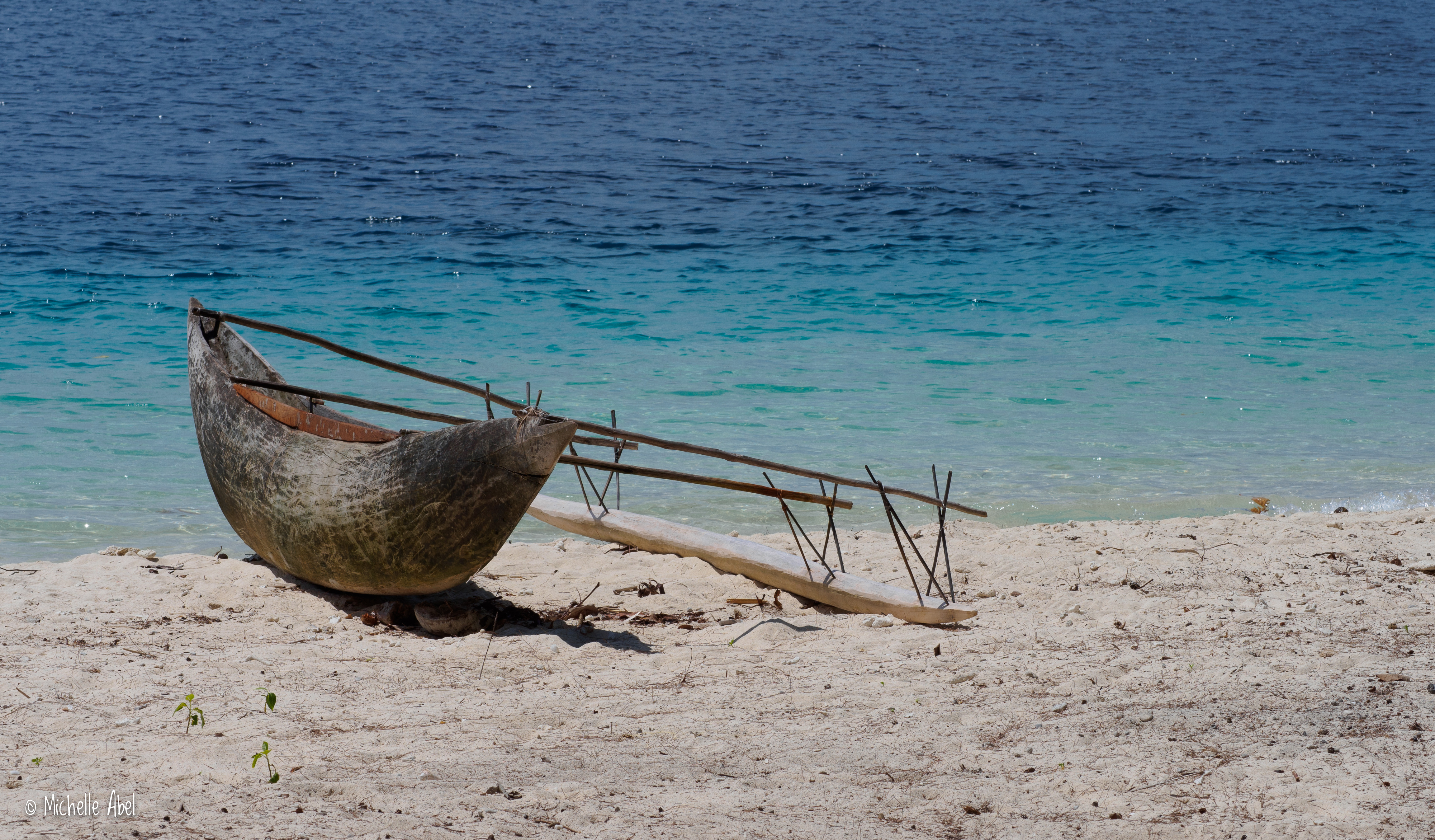 Tropical paradise – white sands, blue water, frangipani trees, fresh fish and pineapple. Wandering barefoot in the soft white sand around a small coral atoll.