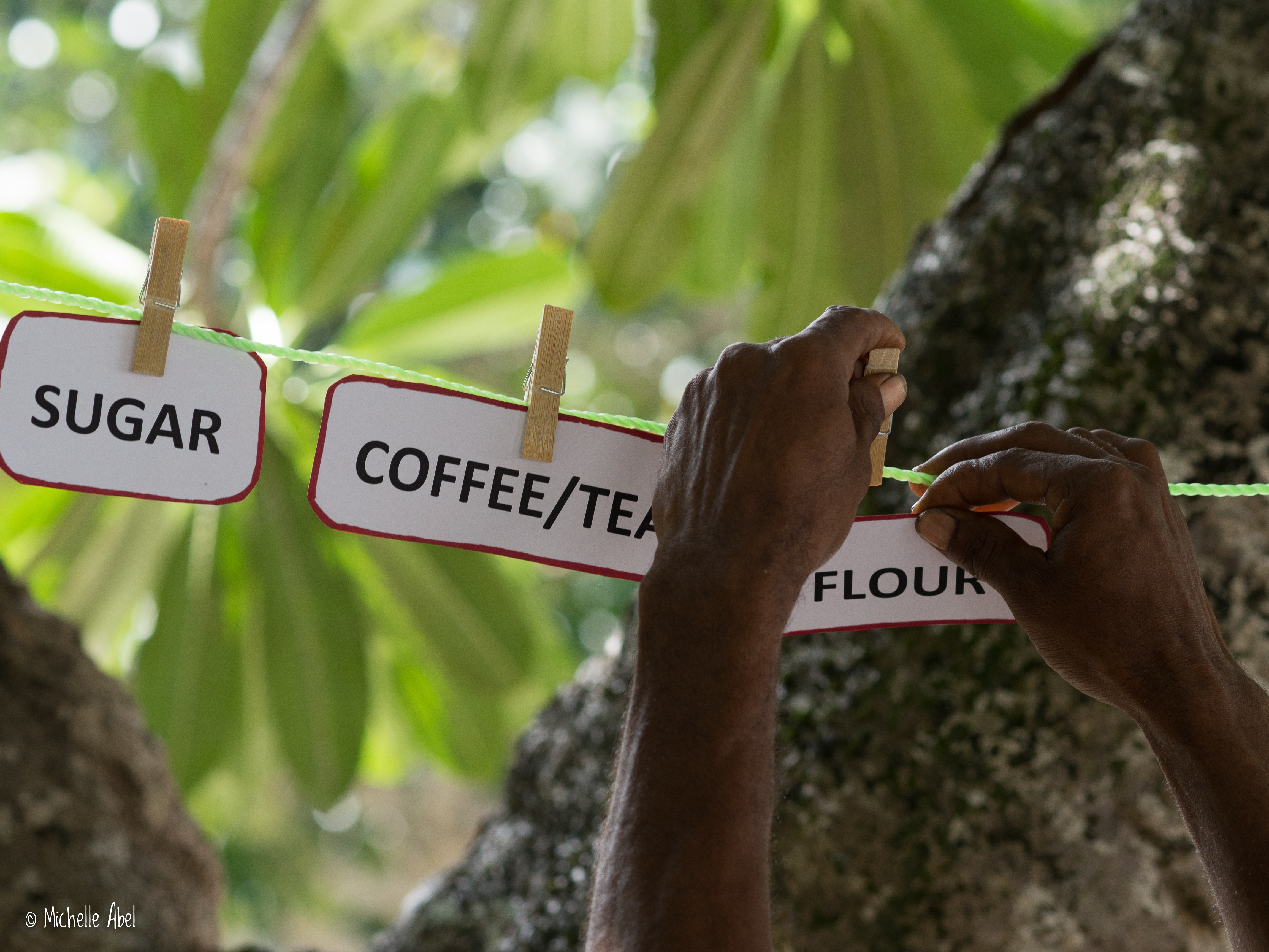 The only source of water for drinking and cooking are six 9000 litre rain-water tanks. At the time of my visit two are empty, two are one quarter full, and two are locked – about half full. If it doesn’t rain soon all the tanks will be locked and the community will start rationing their drinking water. Sometimes they have to ration for more than a month.