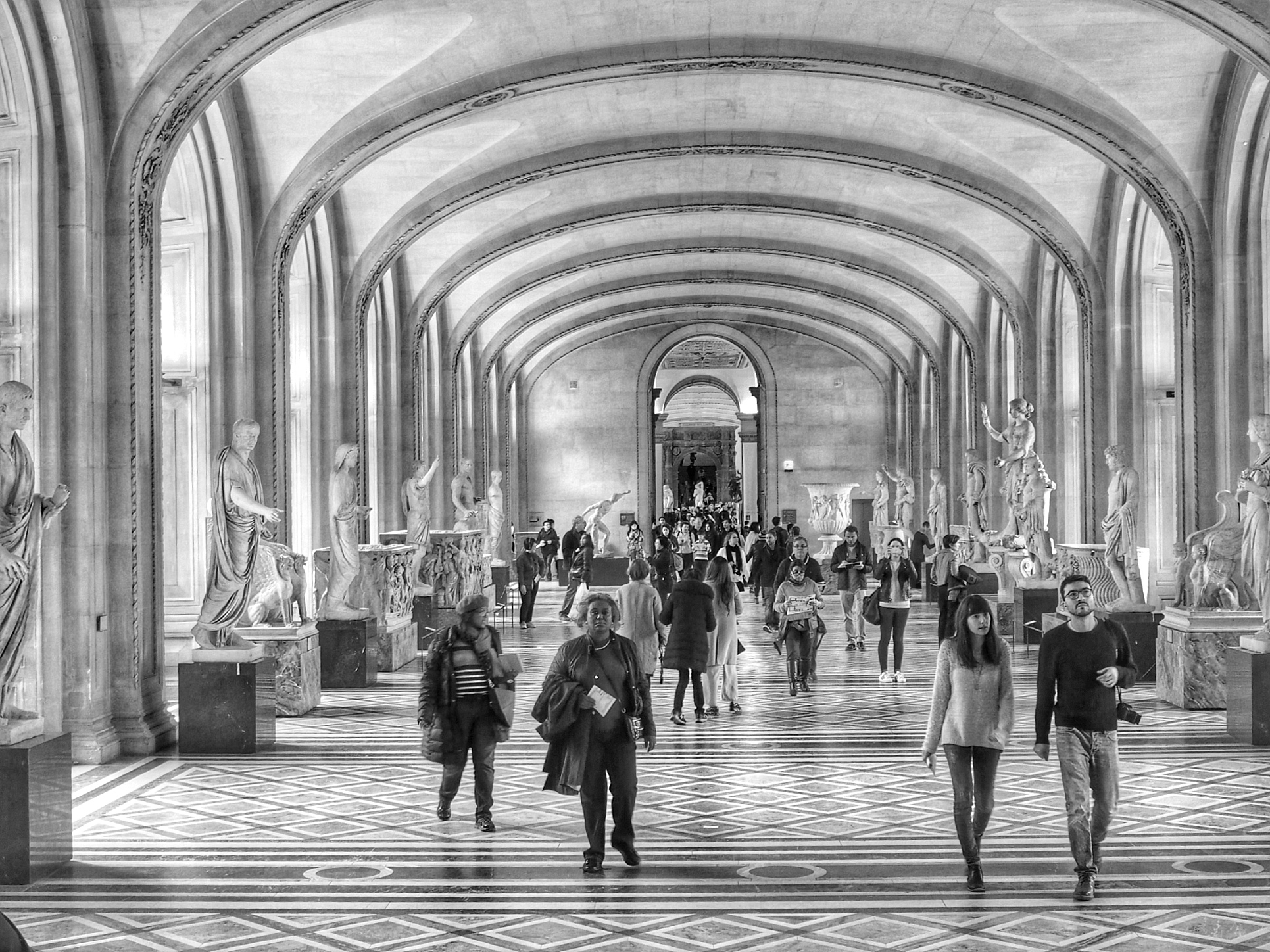 Happy to be on holiday in France with family. Here are some black and white shots from the Lourve, the jpgs edited with snapseed on my iPad – the serious editing will have to wait until I get home! I needed a theme to find some focus in the hugeness of this place, so chose sculpture.
